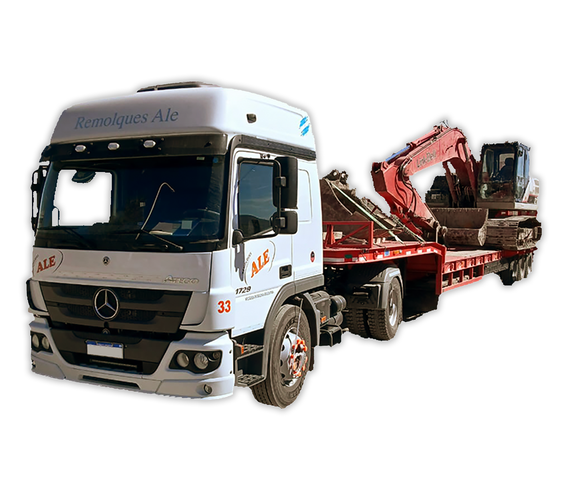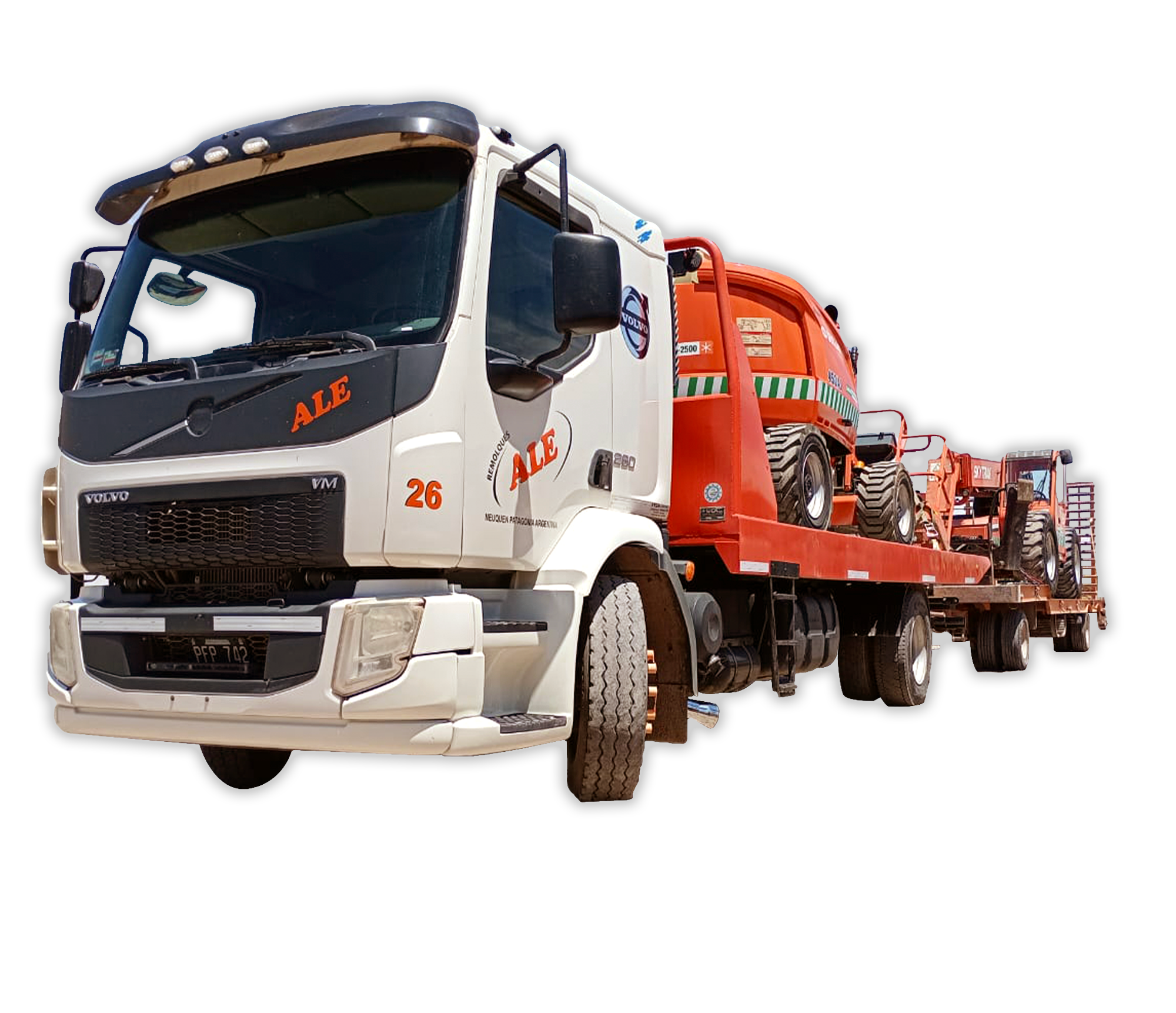 Plataforma de carga deprimida para el traslado de máquinas de gran porte, como excavadoras, motoniveladoras, cargadoras, entre otras.